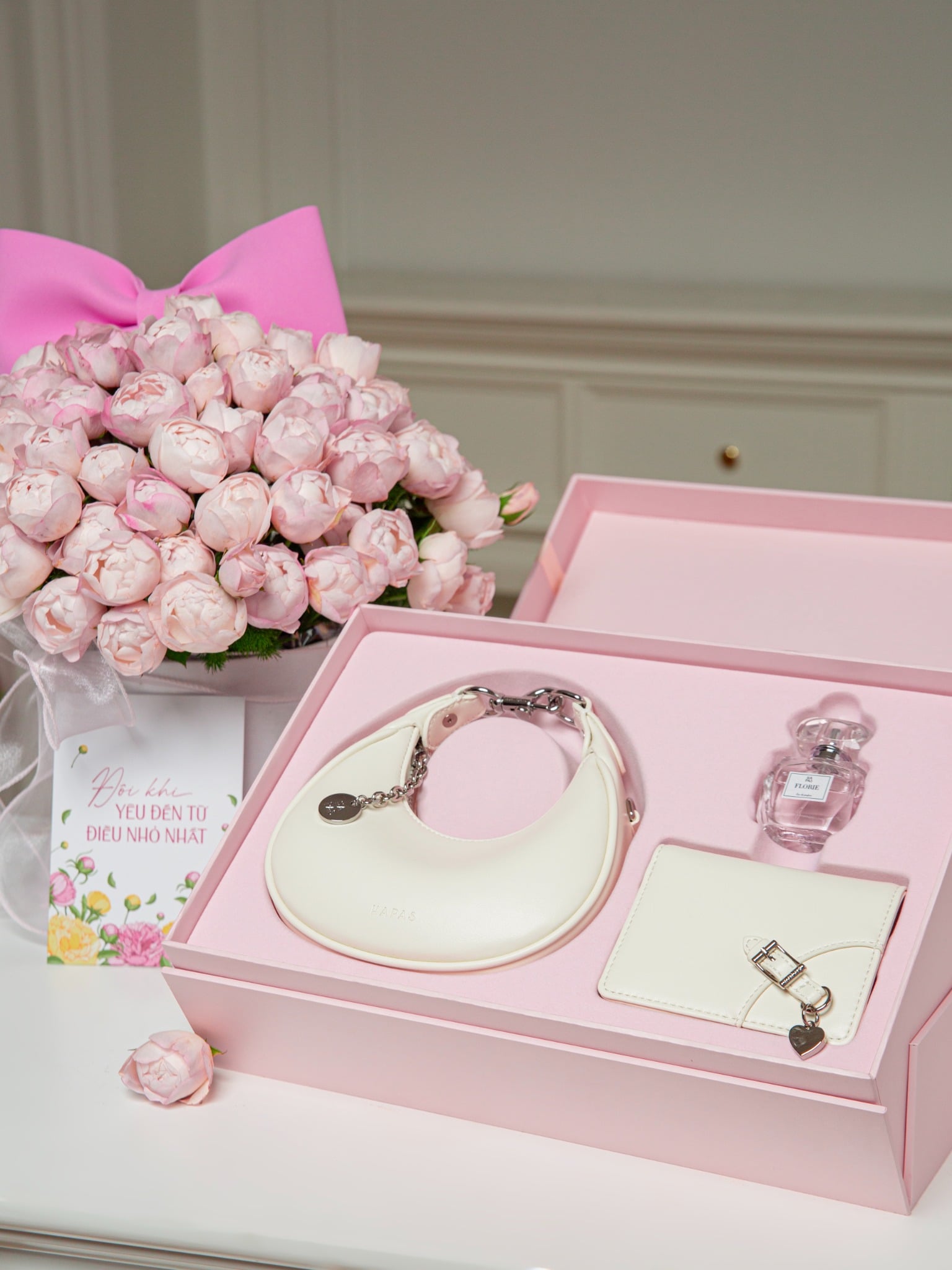 Bộ Quà Tặng Túi Xách Phủ Màu Hộp Thân Thương 2025 - Trắng
