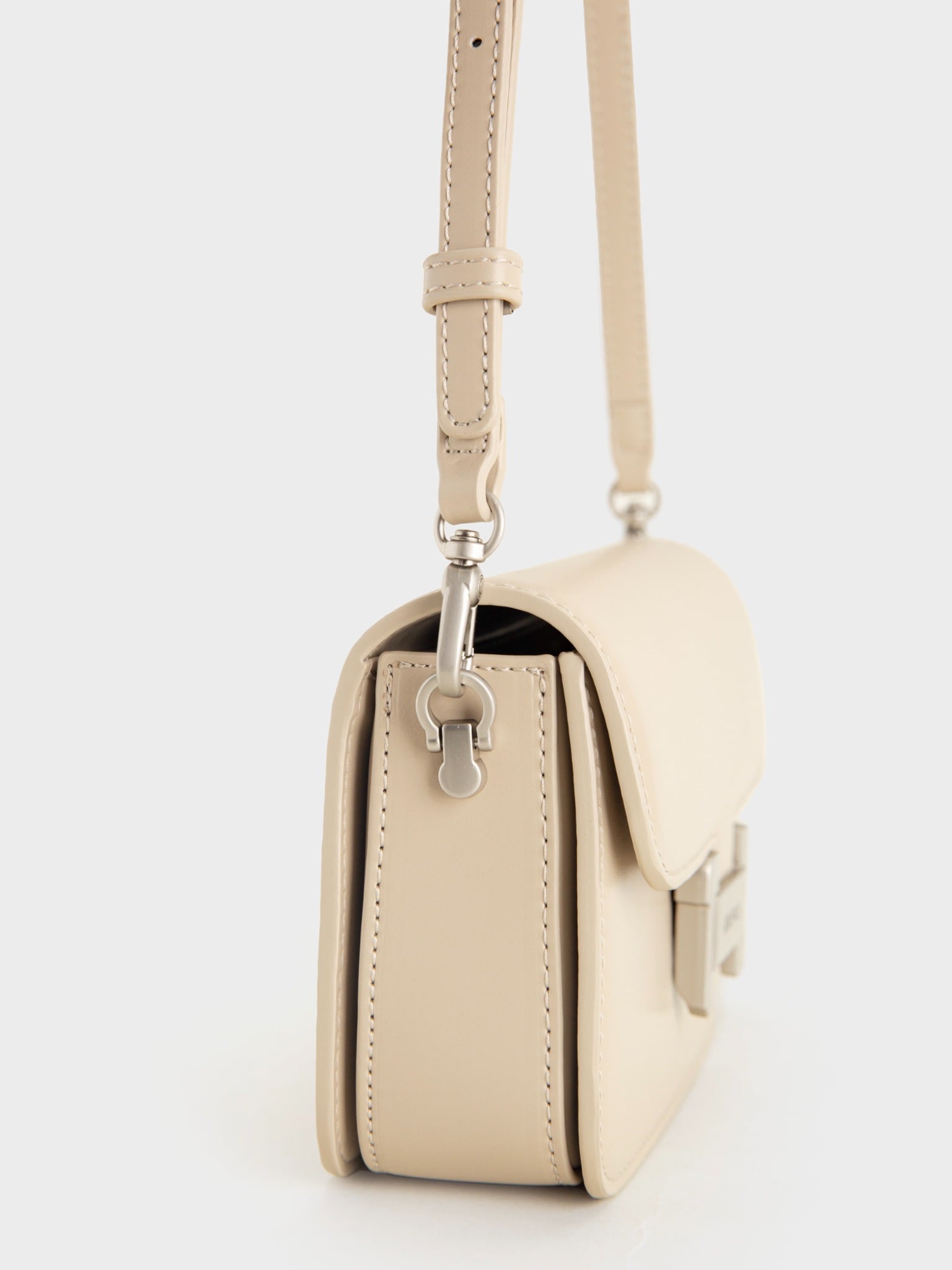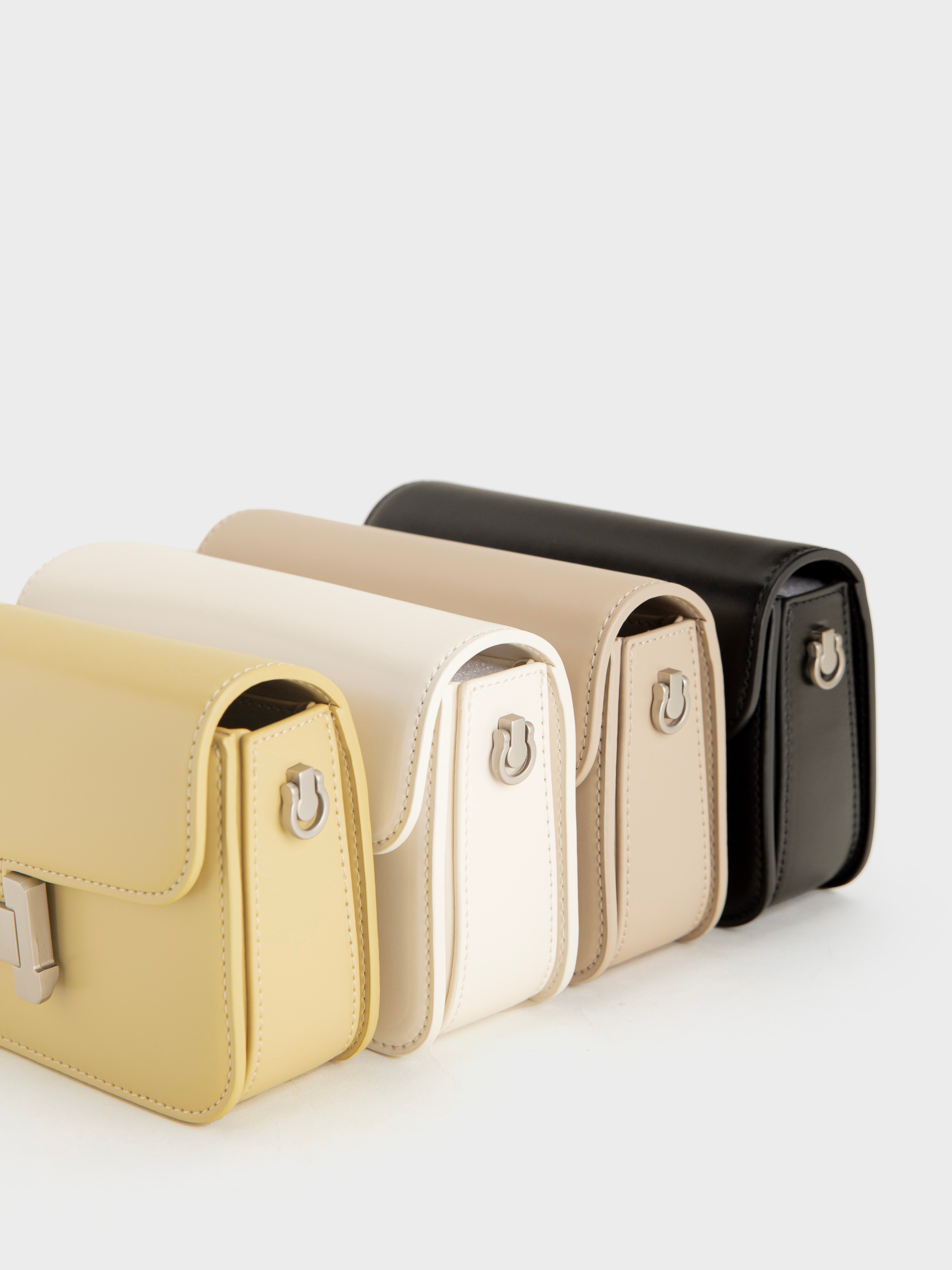 Túi Đeo Chéo Đáy Cong Khóa Gài Size 23 - Trắng
