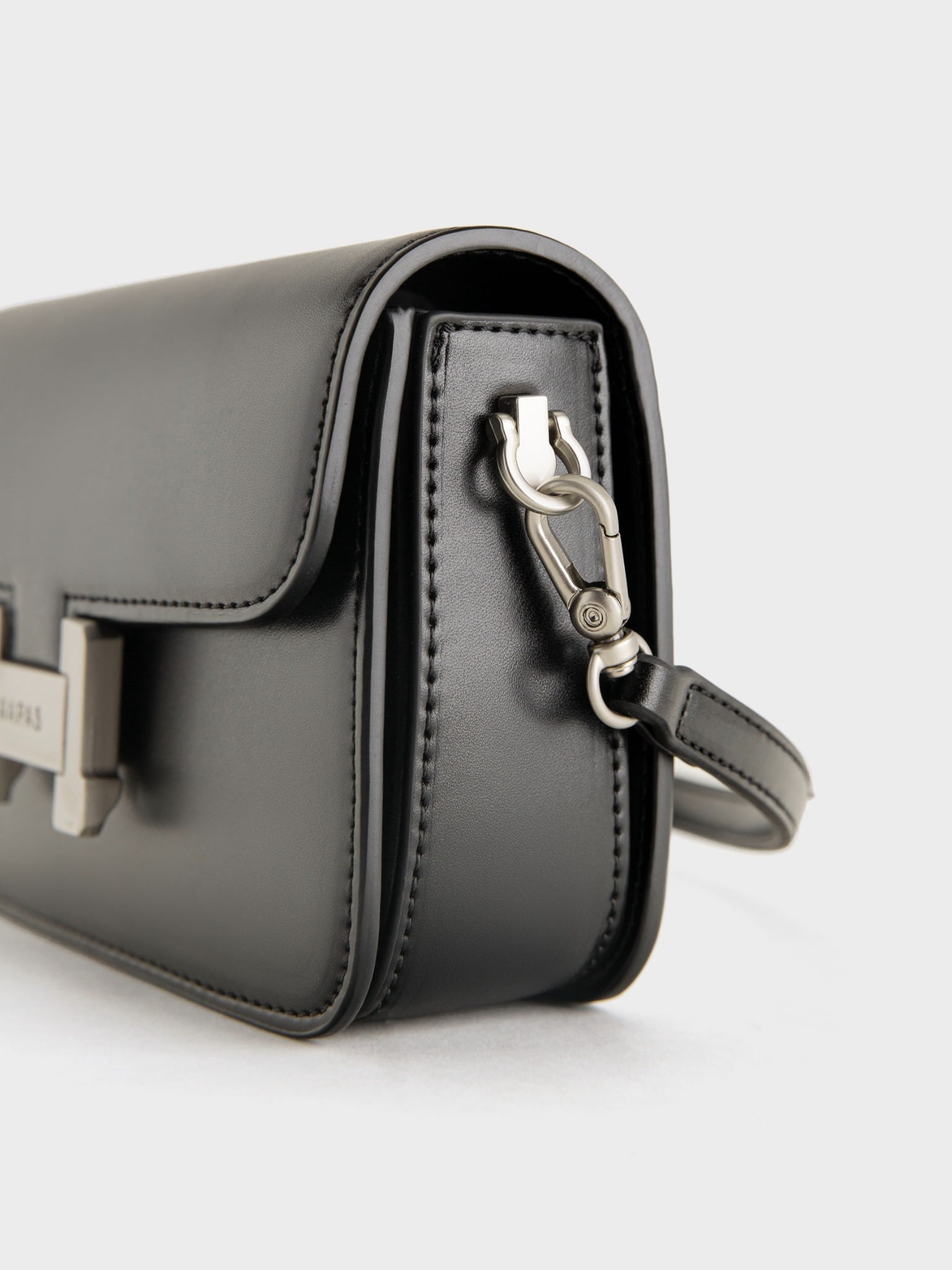 Túi Đeo Chéo Đáy Cong Khóa Gài Size 23 - Đen