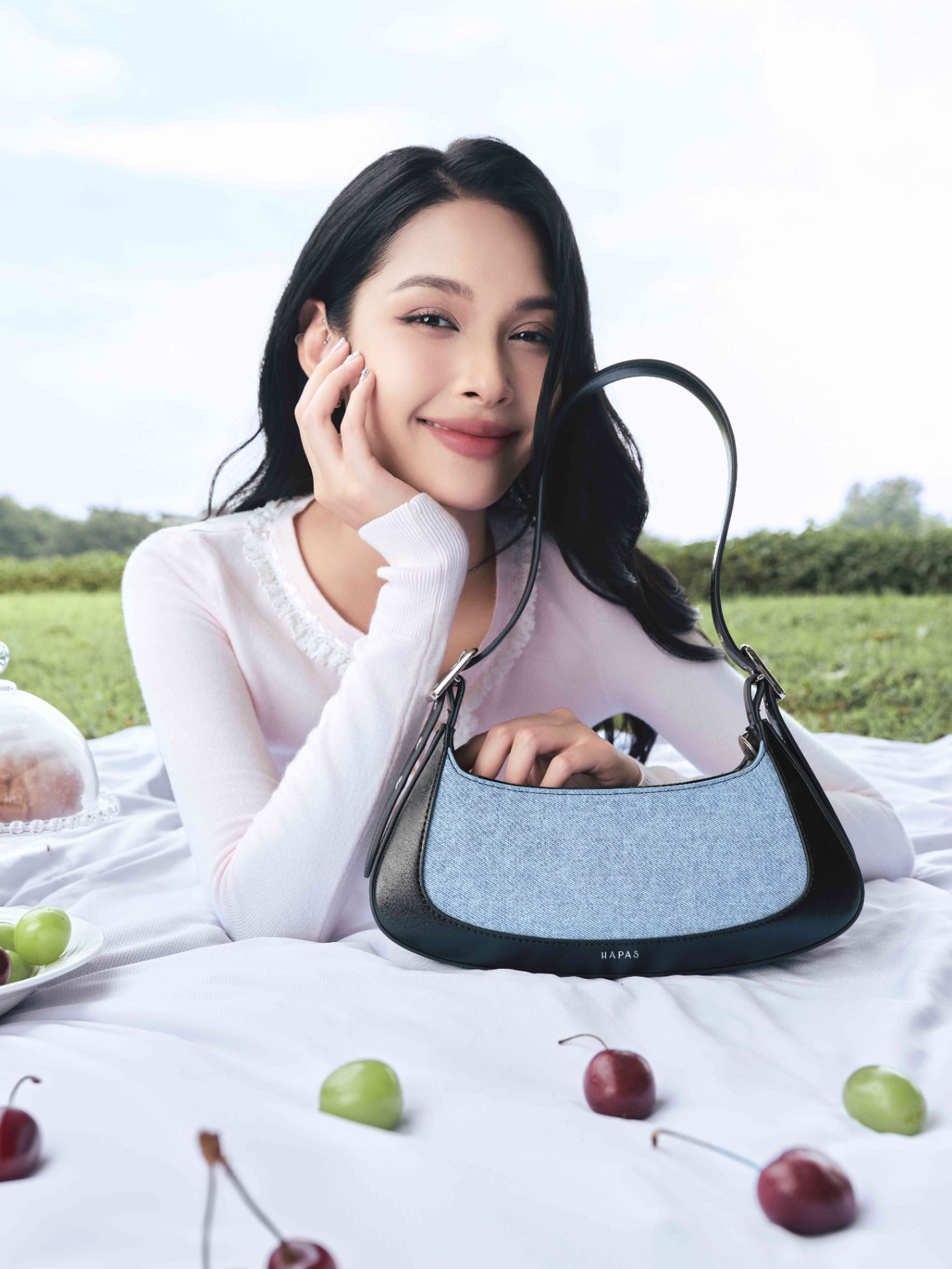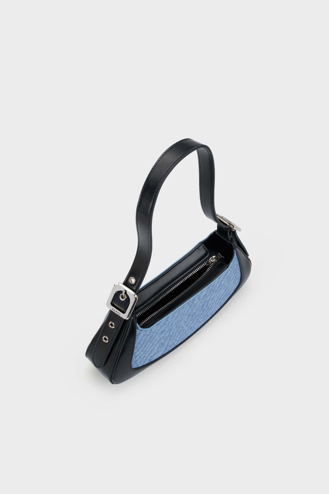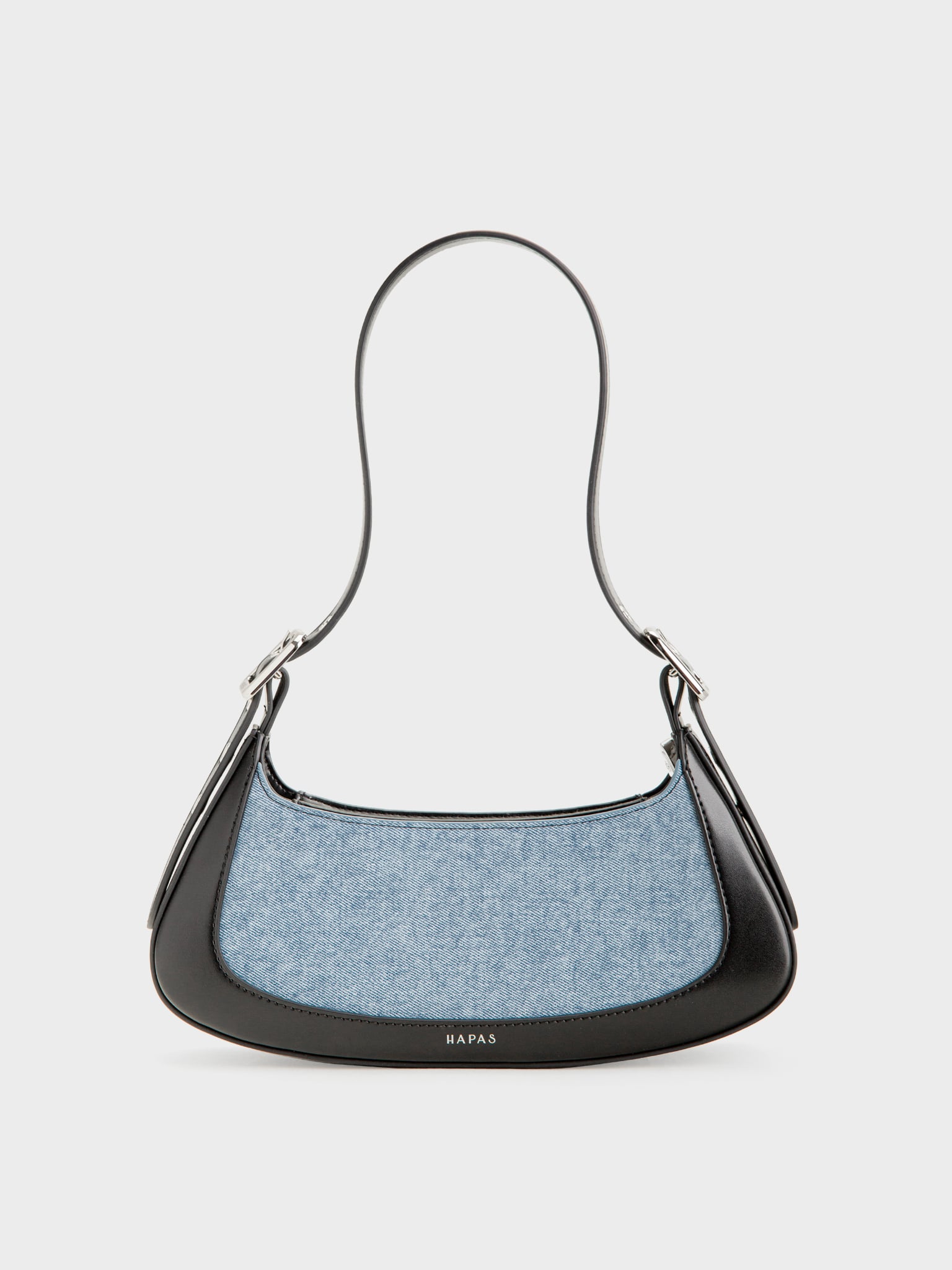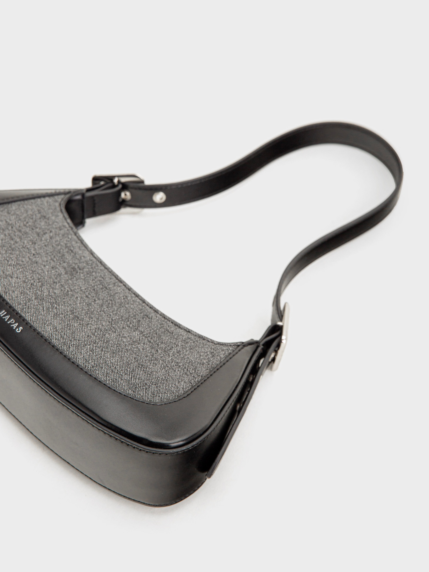 - Chất liệu PU phối cùng vải jean mang đến sự kết hợp hài hòa giữa cá tính và hiện đại