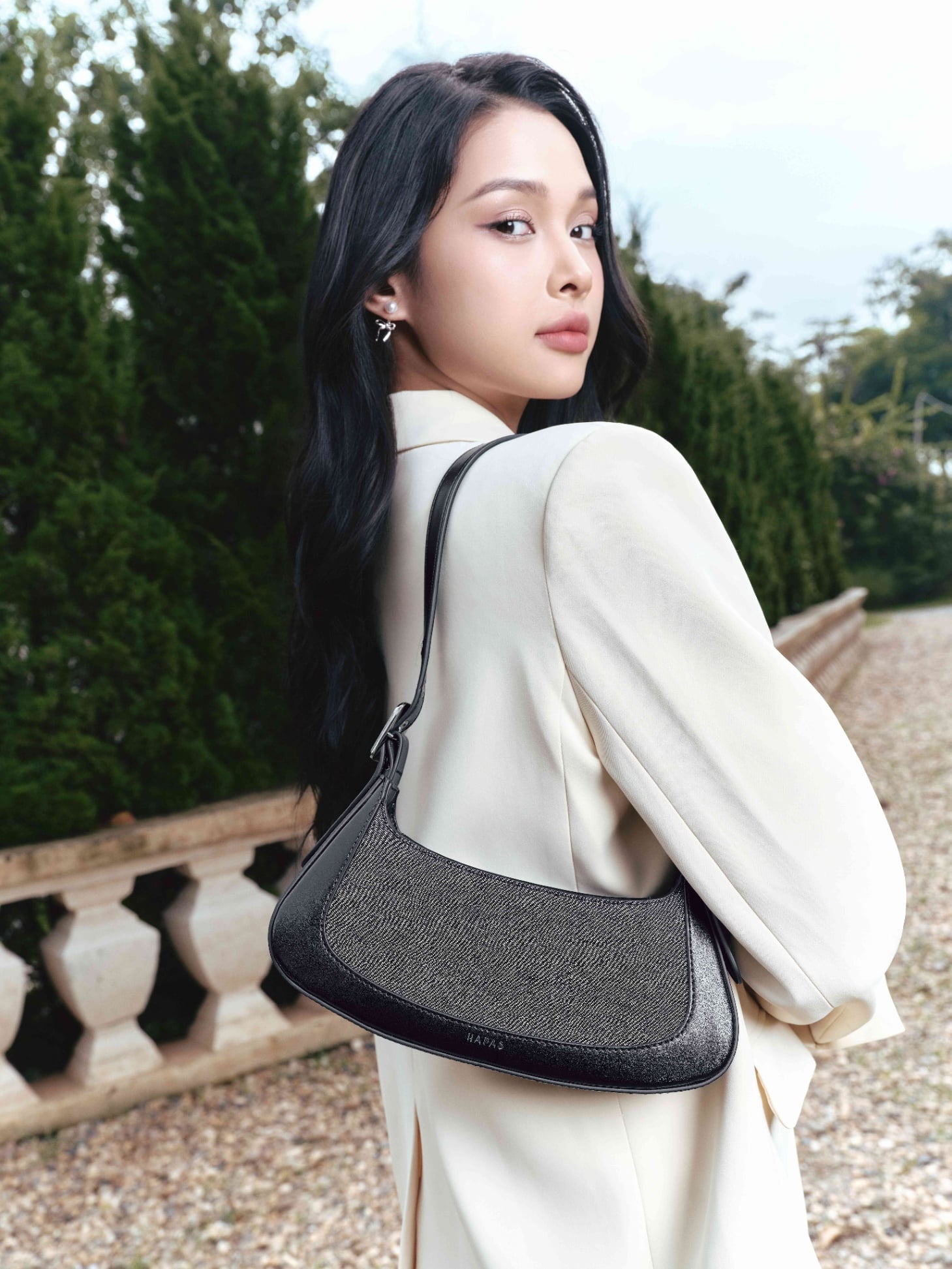 Túi Đeo Vai Hobo Đáy Vuông Love Charm Size 23 - Kem