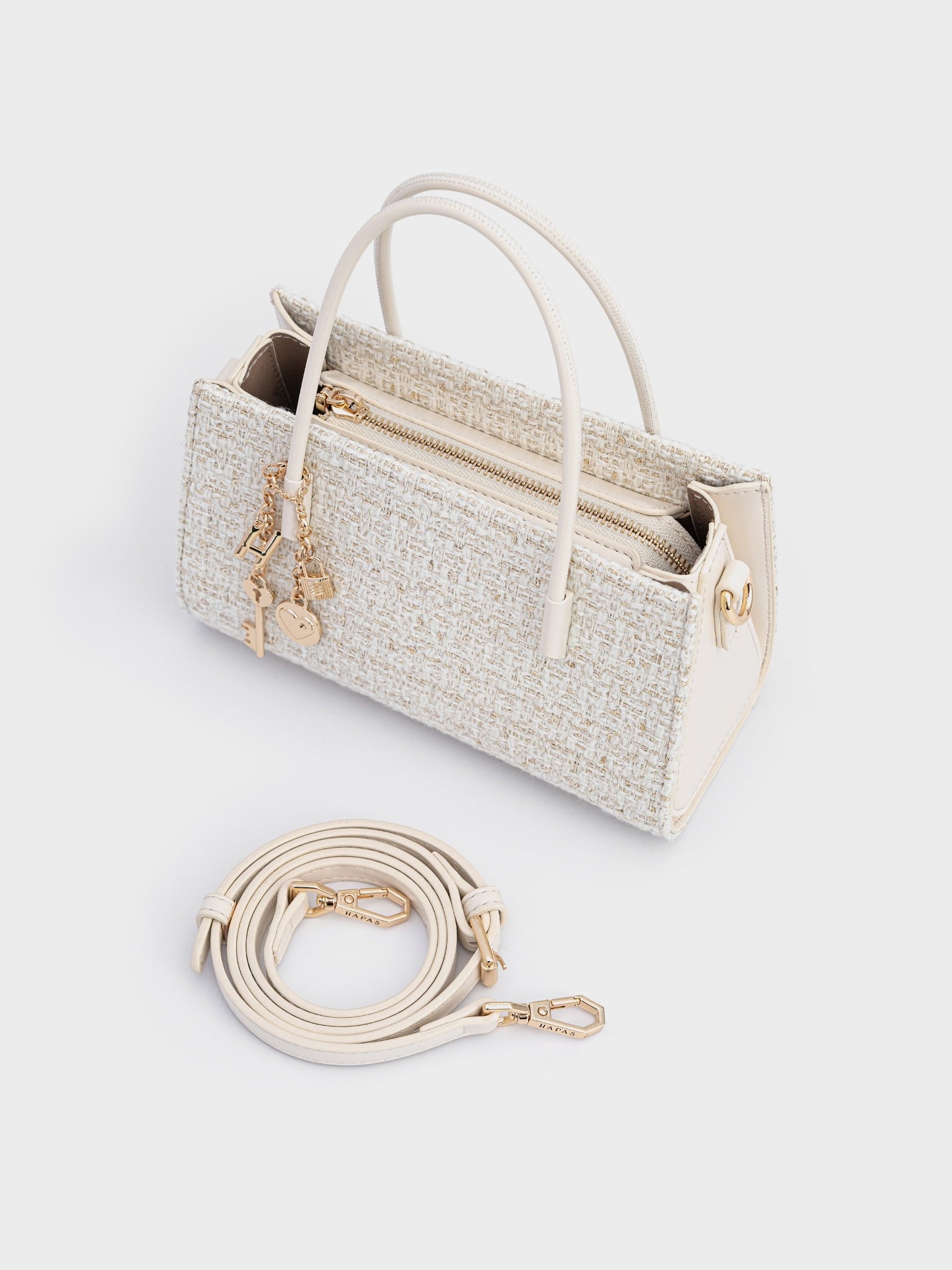 Túi Đeo Vai Logo Cách Điệu Monet Size 24 - Trắng Tweed