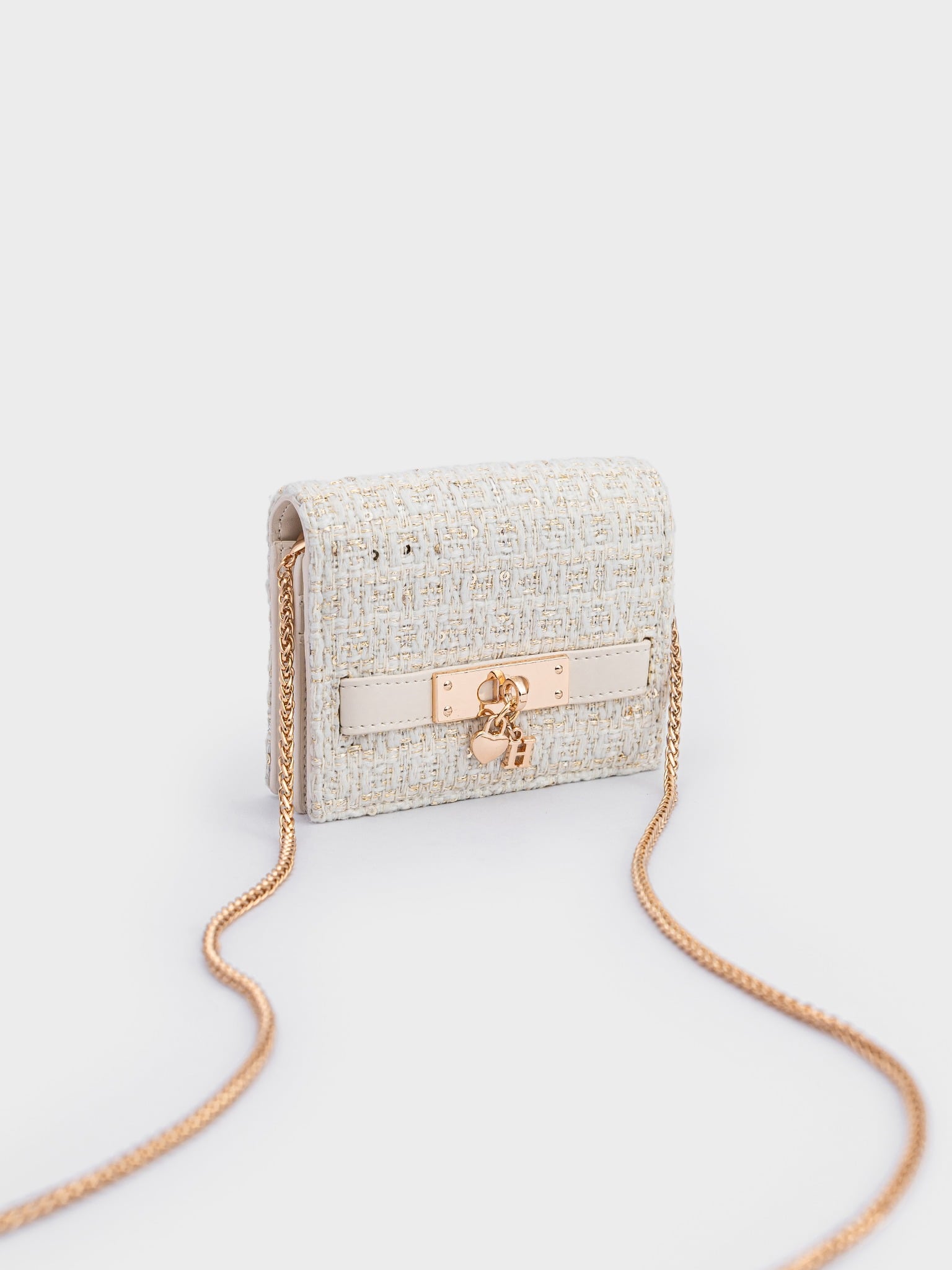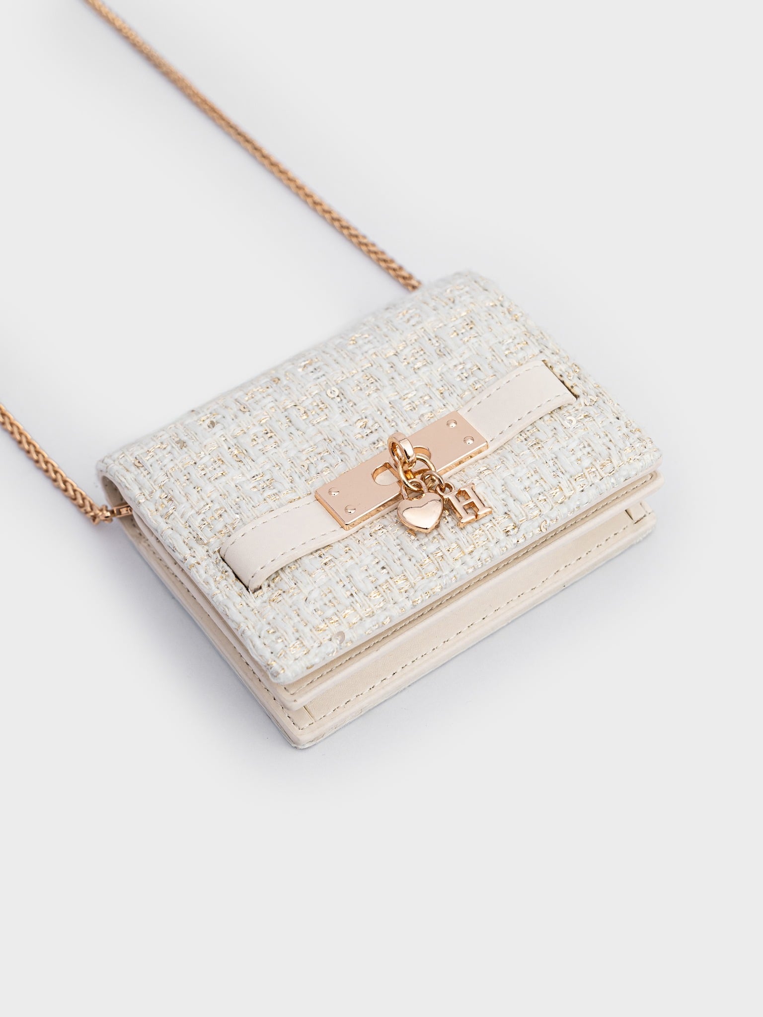 Túi Đeo Vai Logo Cách Điệu Monet Size 24 - Trắng Tweed