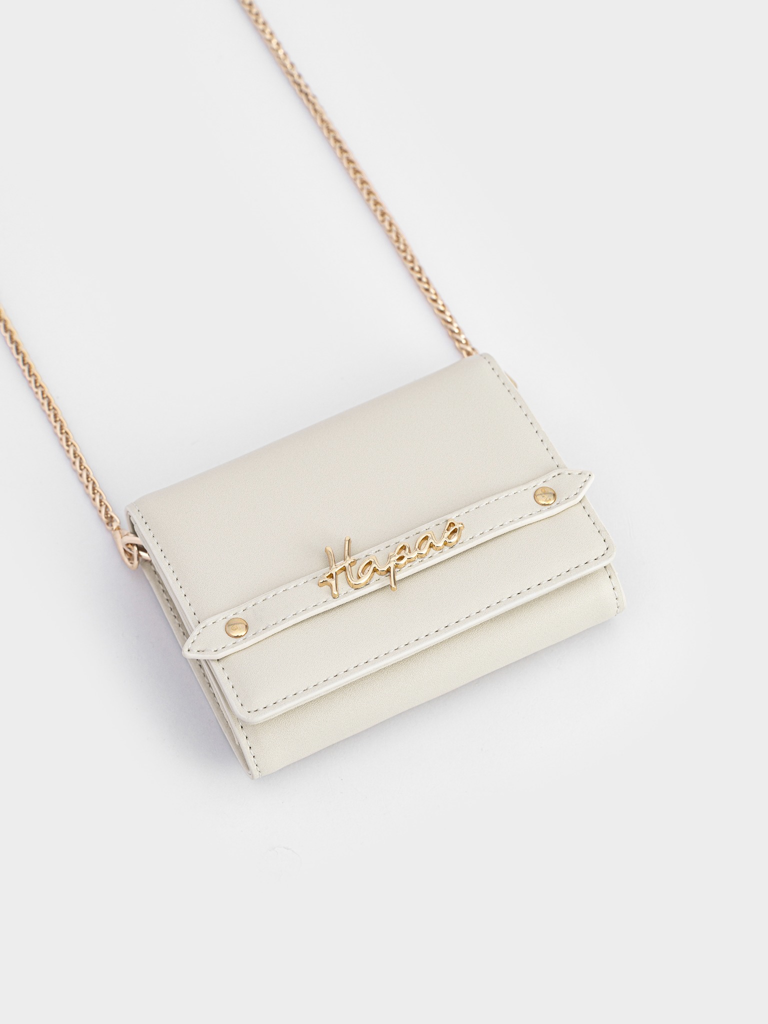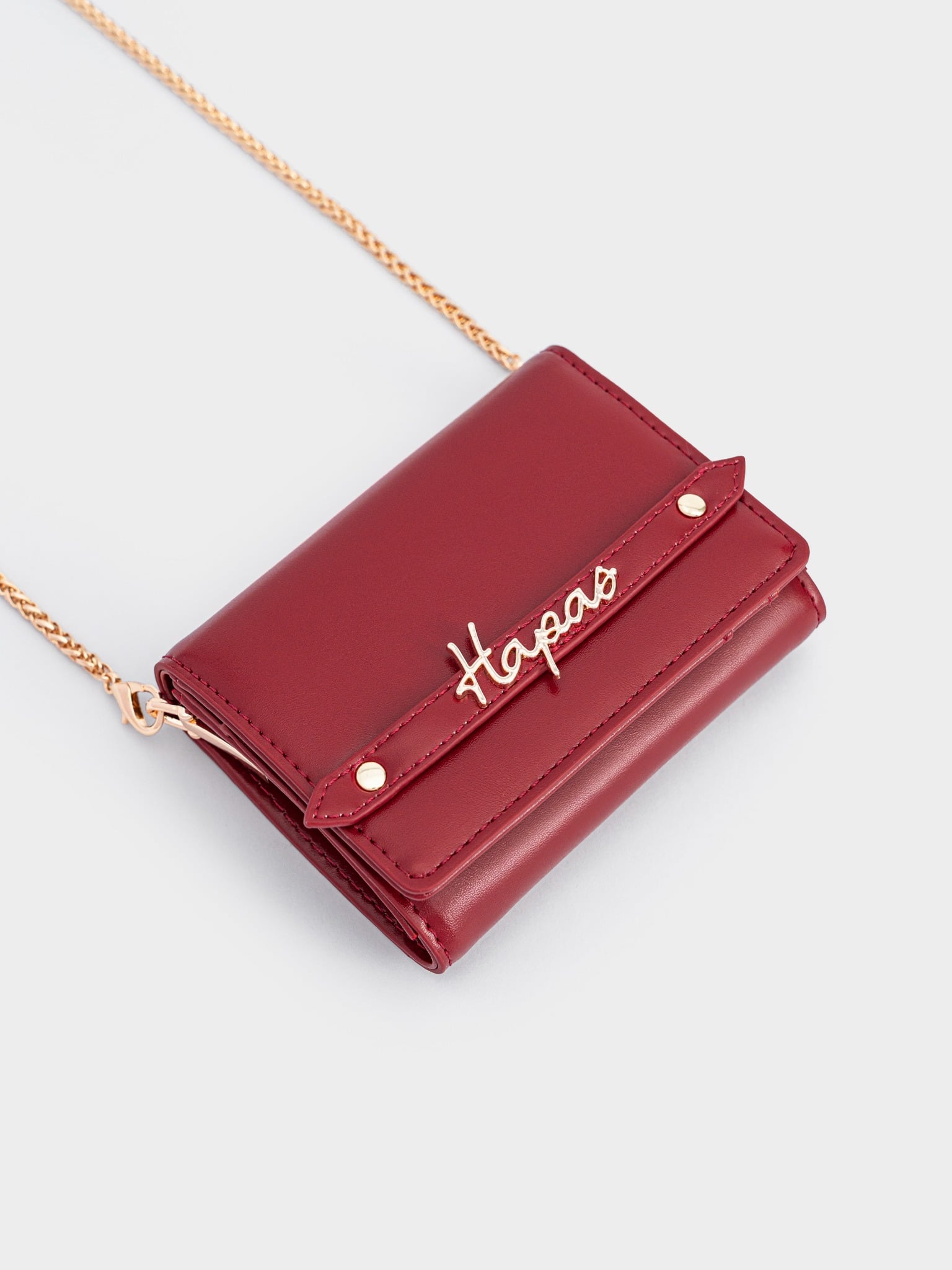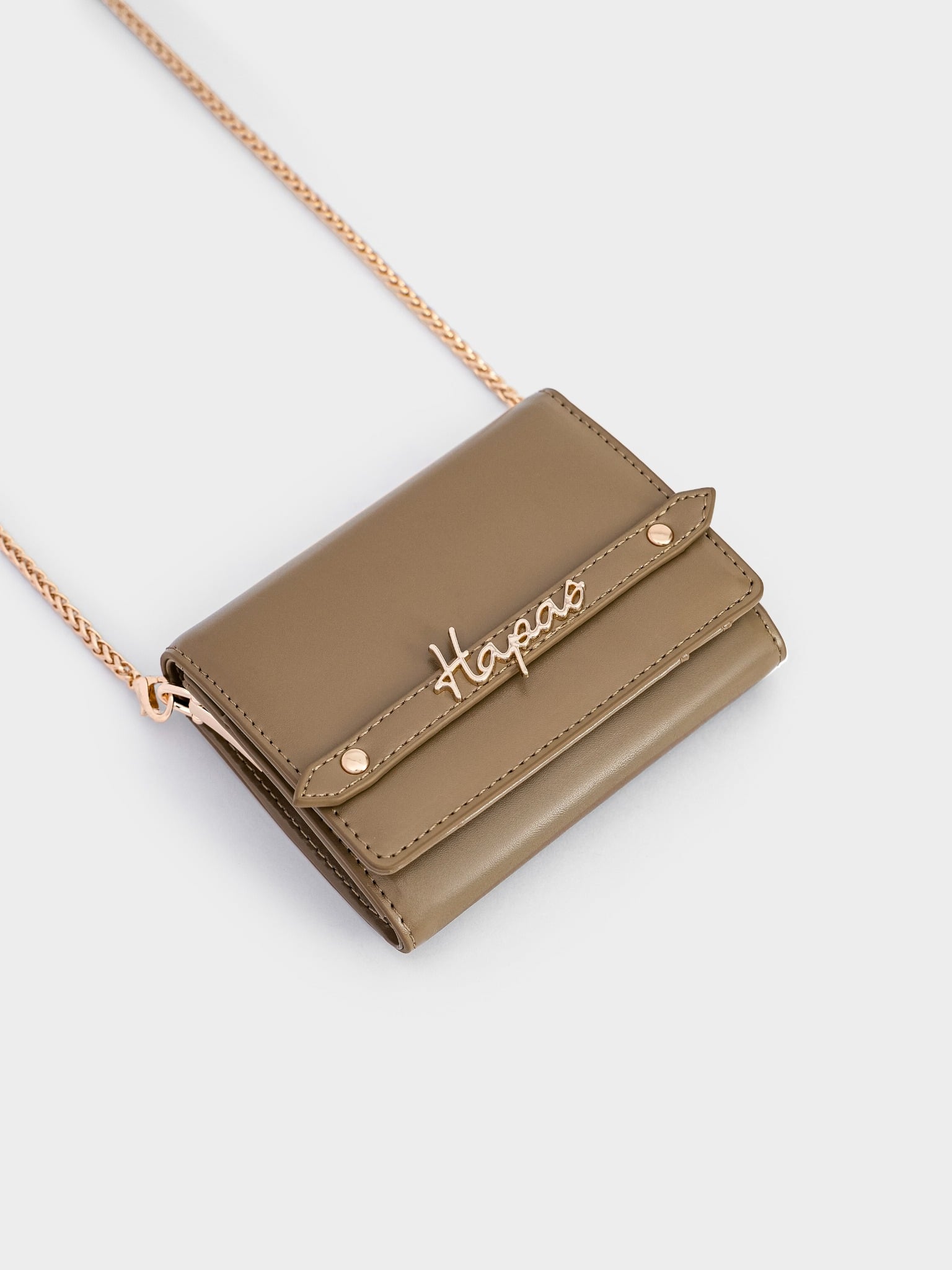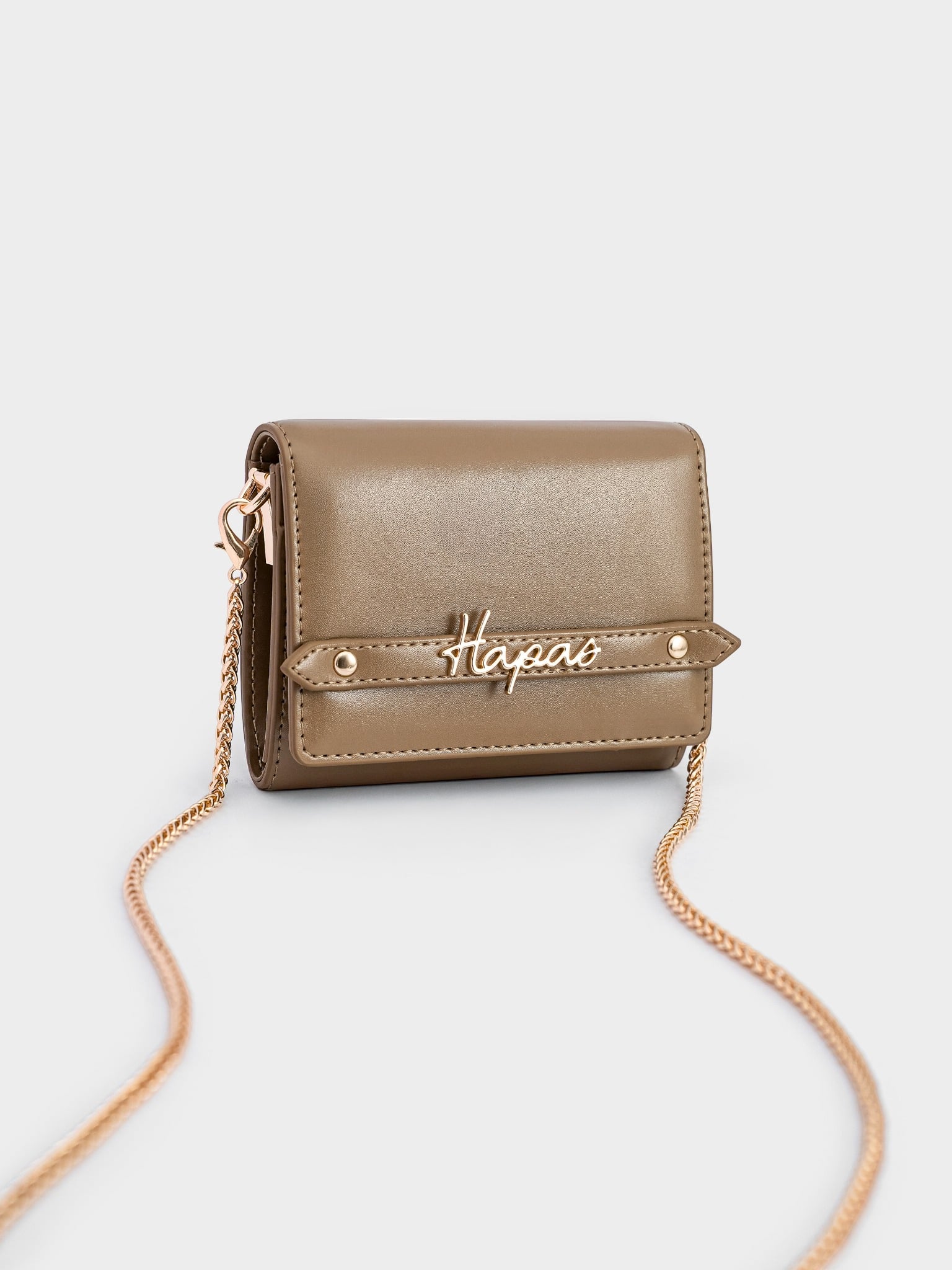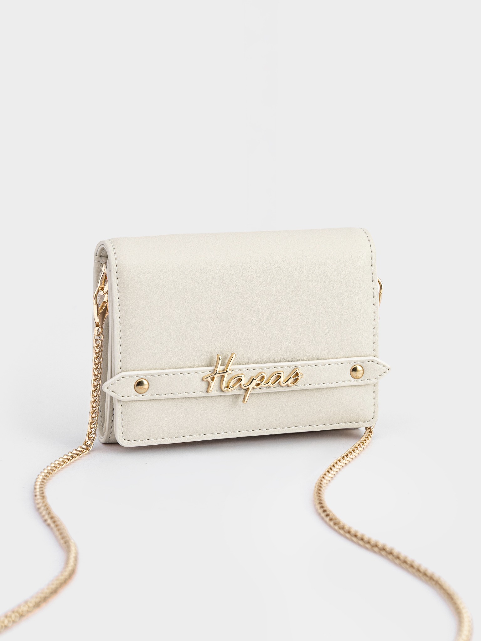- Charm chữ ký Hapas bằng kim loại đặt trên đai tạo sự sang trọng khi cầm trên tay